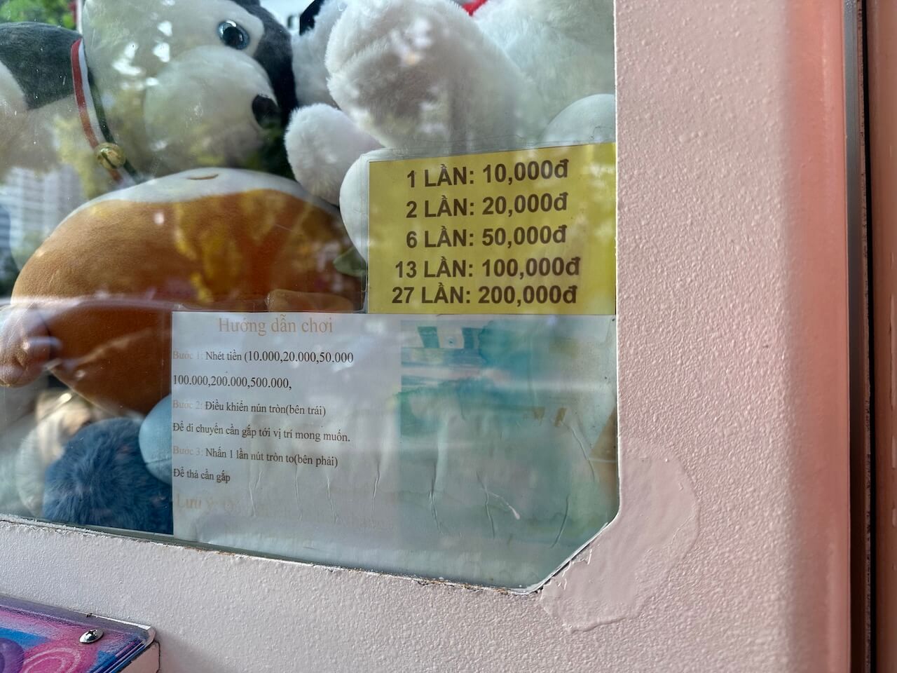 豪快な料金設定|200,000VND(約1,200円)で27回|1回7,407VND現に彼は50,000VND(約300円)で6回挑戦し、2つの景品をゲットしていました。